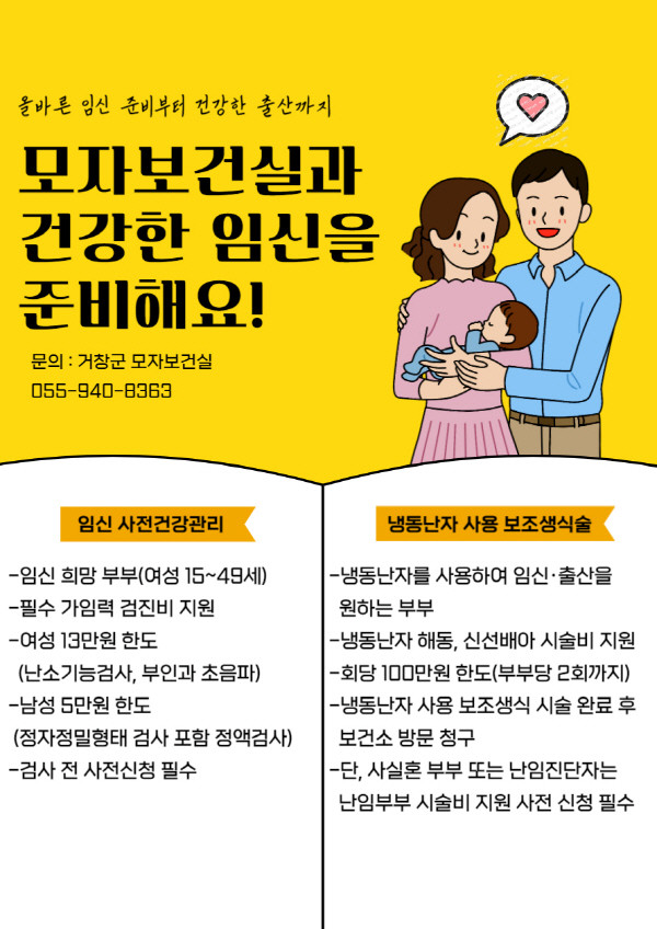 | ▲ 냉동난자, 임신사전건강관리 사업 시행(사진=거창군) |