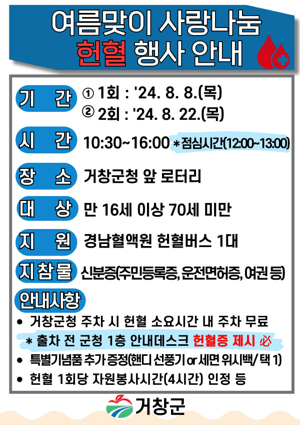 | ▲ 거창군 3분기 헌혈 행사(사진=거창군) |