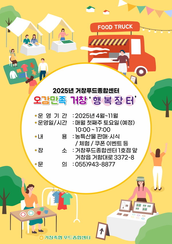 행사에서는 소규모 이벤트와 각종 할인 행사 등을 통해 거창군의 우수 농산물 및 가공품을 홍보하고 판매할 예정이다.