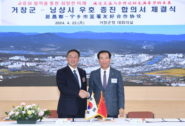 구인모 거창군수와 황타오 닝샹시장이 서명한 합의서에는 양 도시 간 미디어를 통한 상호 홍보, 문화예술 교류, 의료자원과 의료인력 교류, 농산물 수출 협력, 상호 투자 적극 유치환경 조성, 공무원 인적 교류 등을 통해 우호를 증진하는 내용이 담겼다.