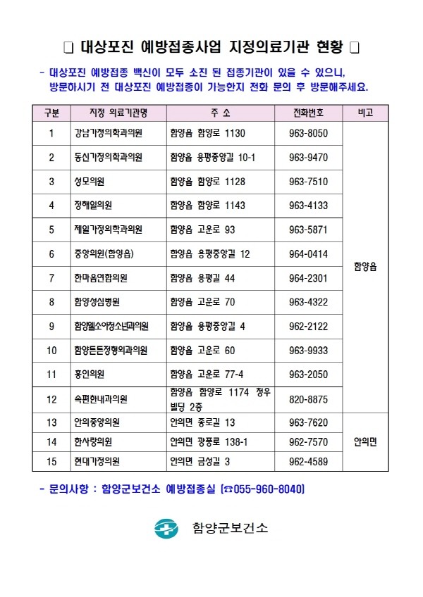 | ▲ 대상포진 지정의료기관 현황(사진=함양군) |