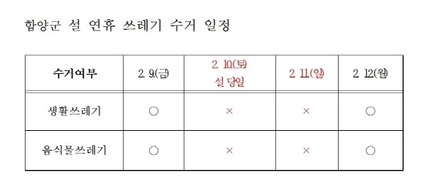 | ▲ 함양군 설 연휴 쓰레기 수거 일정(사진=함양군) |