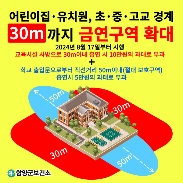 개정된 내용에 따르면 어린이집과 유치원 시설 경계선으로부터 10m 이내였던 금연구역이 30m로 확대되며, 초·중·고등학교의 경우는 출입문으로부터 직선거리 50m 이내(절대 보호구역)로 설정된 기존에 더해, 시설 경계선으로부터 사방 30m 이내로 금연구역이 신설된다.