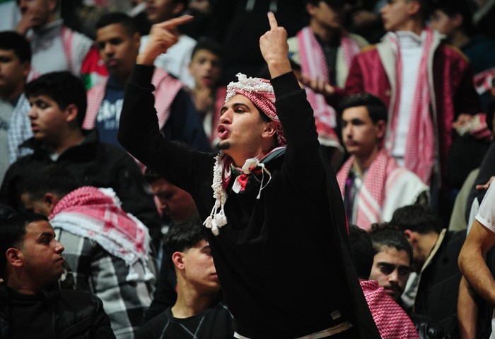 [프레스뉴스] 채정병 특파원=10일(현지시간) 2023년 아시아축구연맹(AFC) 아시안컵 결승전 요르단 대 카타르의 경기에서 요르단을 응원하기 위해 암만 스포츠시티에 모인 시민들 중 한명이 카타르에 세번째 페널티킥이 주어지자 주심을 강하게 비난하고 있다. 경기는 페널티킥만으로 3득점한 카타르가 3대1로 승리했다.