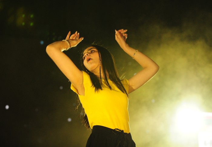 [프레스뉴스] 채정병 특파원=31일(현지시간) 2022 케이팝 월드 페스티벌 요르단 지역예선이 암만 문화궁전에서 열린 가운데 한 참가자가 열정적인 몸짓으로 케이팝 댄스를 추고 있다.