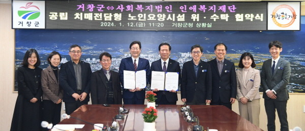 협약서에는 거창군 공립 치매전담형 노인요양시설의 관리·운영에 따른 위탁 범위와 수탁기간 및 조건, 수탁자의 의무, 재산 관리 등을 명시했으며, 두 기관은 시설의 효율적인 운영 관리에 상호 협력해 나가기로 했다.