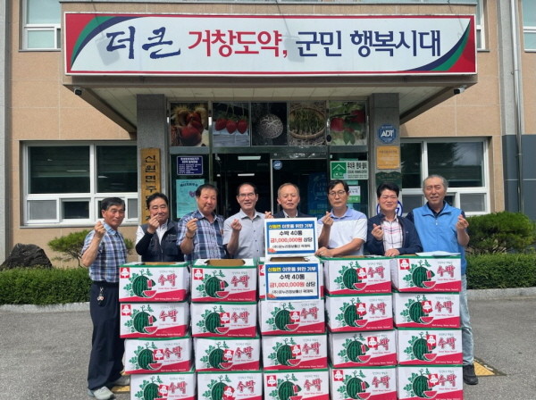 이날 기부된 수박은 마을 이장과 직원들이 신원면 33개 경로당과 지역아동센터 등에 직접 방문하여 전달했다.