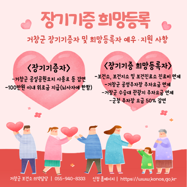또한, 군 보건소는 직접 방문이 어려운 희망자를 위해 ‘찾아가는 장기기증 희망등록소’를 운영하고 있다.