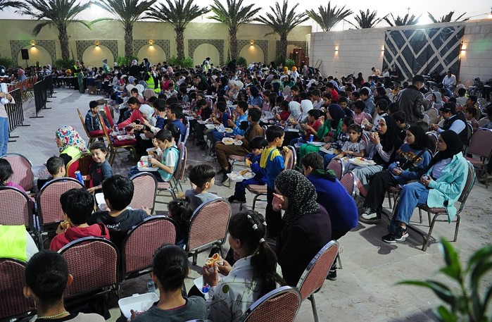[프레스뉴스] 채정병 특파원=5일(현지시간) 요르단 청년자원봉사단체 '나흐누 알 아싸르(We are the Impact)' 회원들이 요르단의 결손가정과 빈곤층 아이들을 위해 라마단 이프타르(금식 후 첫 식사) 행사를 연 가운데 아이들이 함께 음식을 먹고 있다.