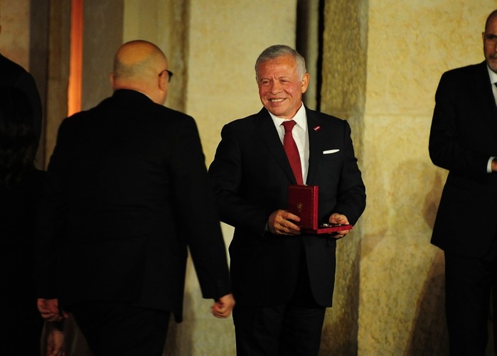 [프레스뉴스] 채정병 특파원=25일(현지시간) 제78주년 요르단 독립기념일 기념식이 알 후세이니아 궁전에서 열린 가운데 압둘라 2세 국왕이 국가 공로자에게 훈장을 수여하고 있다. 요르단은 1946년에 영국으로부터 독립했다.
