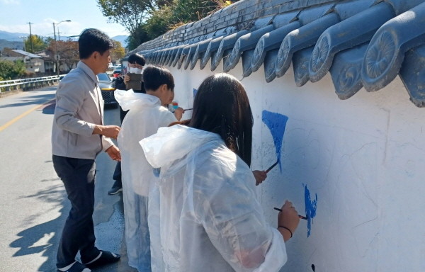 | ▲ 지곡초등학교 담장 벽화그리기 (사진=함양군) |