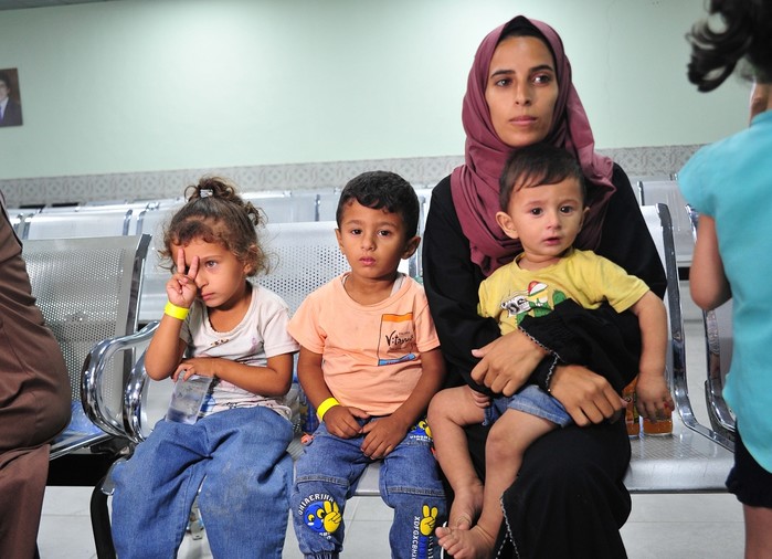 [프레스뉴스] 채정병 특파원=6일(현지시간) 가자지구 어린이 환자 15명과 동반가족 43명을 포함한 58명이 가자-요르단 간 의료회랑을 통해 킹 후세인 국경 검문소에 도착한 가운데 심장병을 앓고 있는 아이(가운데)가 가족들과 함께 병원이송을 기다리고 있다. 이는 지난 2월 11일 압둘라 2세 요르단 국왕이 도널드 트럼프 미국 대통령과의 회담에서 2천명 가자 어린이 환자 수용치료를 약속한 것으로 지금까지 8차에 걸쳐 119명의 외상 및 중증질환 어린이 환자들이 인도주의적 의료지원을 받았다.