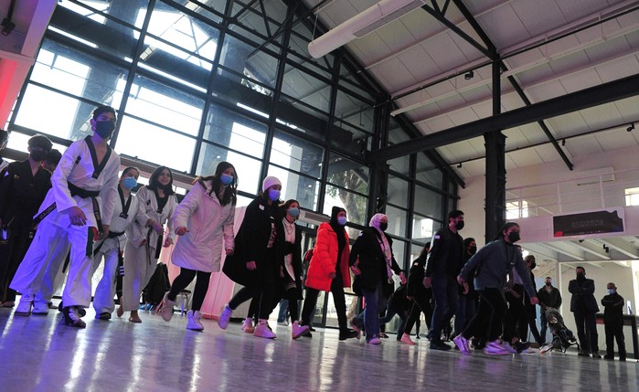 [프레스뉴스] 채정병 특파원=24일(현지시간) 한류문화행사 'Feel Korea 2021'이 요르단 암만 라스 알 아인 갤러리에서 열린 가운데 참가자들이 '무궁화 꽃이 피었습니다' 게임에 참여하고 있다.