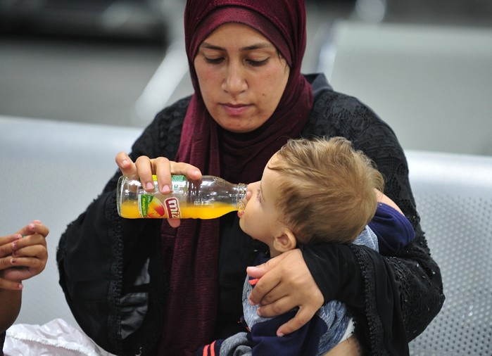 [프레스뉴스] 채정병 특파원=6일(현지시간) 가자지구 어린이 환자 15명과 동반가족 43명을 포함한 58명이 가자-요르단 간 의료회랑을 통해 킹 후세인 국경 검문소에 도착한 가운데 한 엄마가 아이에게 음료수를 먹이고 있다. 이는 지난 2월 11일 압둘라 2세 요르단 국왕이 도널드 트럼프 미국 대통령과의 회담에서 2천명 가자 어린이 환자 수용치료를 약속한 것으로 지금까지 8차에 걸쳐 119명의 외상 및 중증질환 어린이 환자들이 인도주의적 의료지원을 받았다.