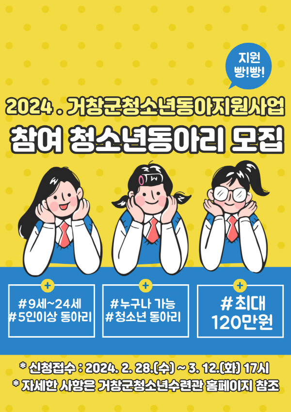 | ▲ 2024 거창군 청소년동아리활동 지원사업 참여 청소년동아리 모집 포스터(사진=거창군) |
