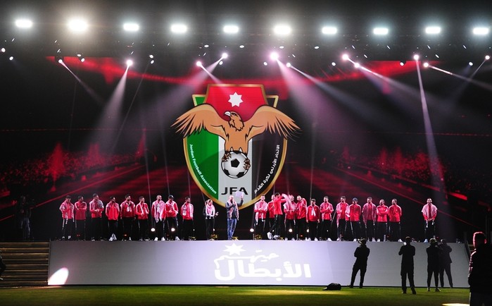 [프레스뉴스] 채정병 특파원=12일(현지시간) 2023 카타르아시안컵 준우승을 달성하고 돌아온 요르단 축구대표팀을 환영하는 행사가 암만 스포츠시티 메인스타디움에서 열린 가운데 선수들이 무대에 올라 시민들의 지지와 연호를 받고 있다.