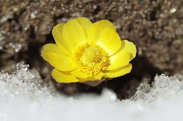 | ▲ 강추위 이겨낸 노란 복수초.(사진=함양군) |