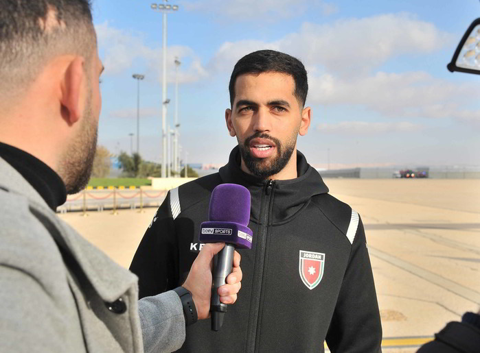 [프레스뉴스] 채정병 특파원=19일(현지시간) 카타르 도하에서 열린 2025 FIFA 아랍컵에서 6골을 넣어 최다득점상 골든부트를 수상한 공격수 알리 올완이 요르단 퀸알리아 국제공항 도착 후 언론과 인터뷰를 하고 있다. 요르단은 2026 북중미 월드컵 본선진출에 이어 이번 아랍컵에서도 역대 최고의 성적을 거두는 등 놀라운 상승세를 이어가고 있다.