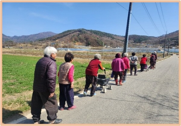 ‘걷기동무’ 사업은 면 지역 마을 어르신들이 걷기 동아리를 결성한 뒤, 만보기 등을 활용해 시기별 연 3회 챌린지(60일간 24만 보, 하루 4천 보)에 참여하는 방식으로 진행된다.