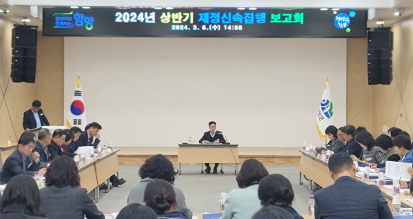 군에 따르면 진난 6일 군청 대회의실에서 서창우 부군수 주관으로 전 부서장 및 사업담당 등 100여 명이 참석한 가운데 상반기 재정 신속집행 보고회를 갖고 부서별 신속집행 계획을 점검하고 대규모 투자사업 관리방안 및 애로사항 등에 대한 다양한 논의가 이뤄졌다.