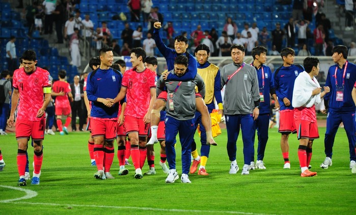 [프레스뉴스] 채정병 특파원=10일(현지시간) 대한민국 축구대표팀이 요르단 암만 국제경기장에서 열린 2026 북중미월드컵 아시아 3차 예선 B조 3차전 요르단과 원정경기에서 2-0으로 승리한 가운데 경기 직후 부상당한 황희찬과 선수들이 가벼운 마음으로 경기장을 빠져나가고 있다.
