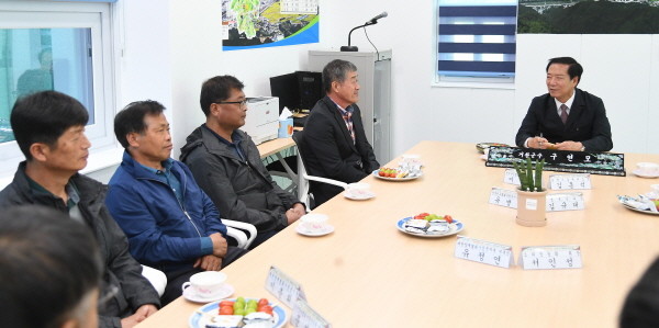 | ▲ 구인모 거창군수가 농민들의 현장 목소리를 듣고있다 (사진=거창군) |