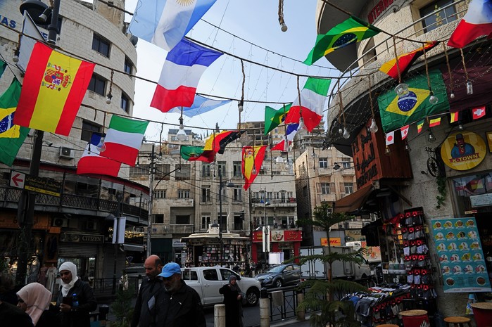 암만 거리에 펄럭이는 월드컵 참가 국기들