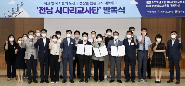 전라남도교육청은 7월 18일(월) 청사 2층 대회의실에서 전라남도, (사)밥일꿈과 함께 다문화가정 학생의 진로·진학 프로그램 지원을 위한 ‘전남사다리교사단’ 발족식을 가졌다.