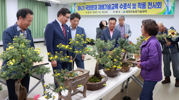 한편, 국화분재 수료식이 끝난 25일부터 11월 말까지 군청 및 농업기술센터 로비에서 교육생들의 작품전시회가 열릴 예정이다.
