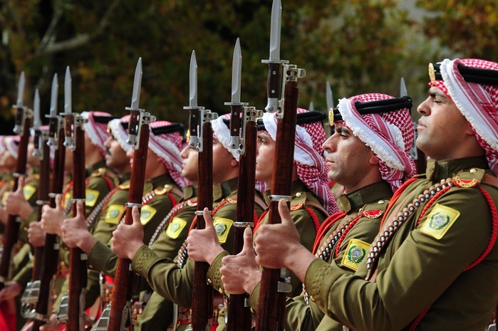 [프레스뉴스] 채정병 특파원=19일(현지시간) 요르단-폴란드 수교 60주년을 맞아 요르단을 방문한 안제이 두다 폴란드 대통령을 환영하는 공식행사가 알 후세이니아 궁전에서 열린 가운데 요르단 왕실 의장대가 최고 예우를 갖추고 도열해 있다.