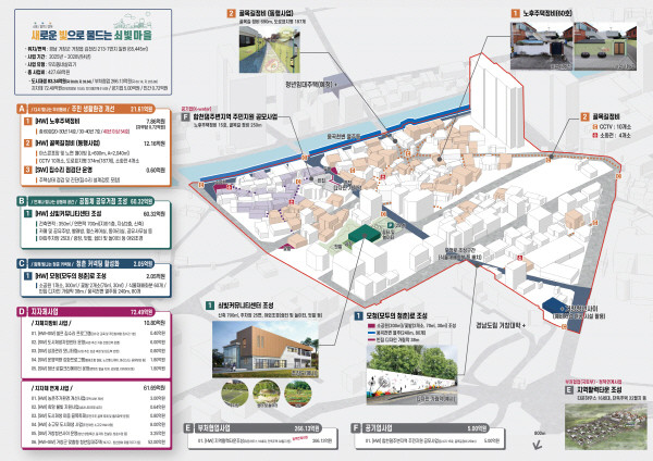 이번 사업을 통해 군은 20년 이상 된 노후 주택을 정비하고 울퉁불퉁한 골목길 노면 정비, CCTV 및 도로표지병을 설치하는 등 주민들의 정주 여건을 개선하여 안전하고 쾌적한 생활환경을 조성할 예정이다.