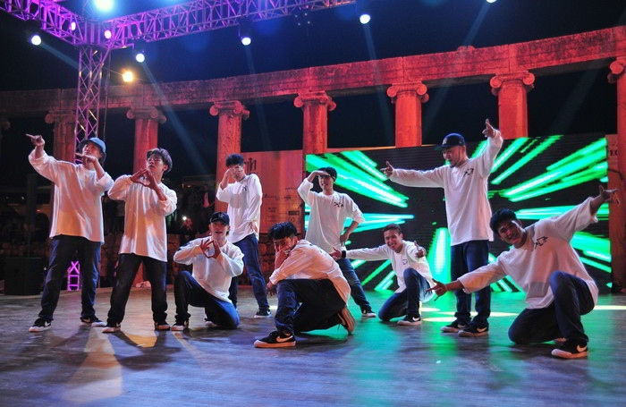 [프레스뉴스] 채정병 특파원=1일(현지시간) 세계적인 대한민국 비보이 그룹 진조크루의 요르단 특별공연이 제라쉬 페스티벌 야외무대에서 펼쳐진 가운데 퍼포먼스의 마지막 포즈를 취하고 있다.