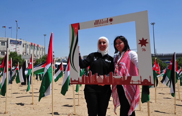 [프레스뉴스] 채정병 특파원=25일(현지시간) 제76주년 요르단 독립기념일을 맞아 시민들이 국기광장에서 기념사진을 찍고 있다.