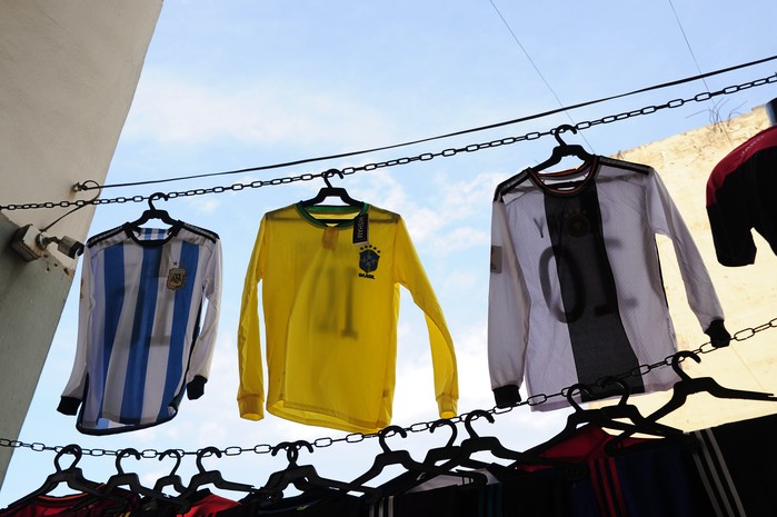 [프레스뉴스] 채정병 특파원=24일(현지시간) 중동에서 최초로 열린 2022 카타르 월드컵이 개막된 가운데 이웃나라 요르단 암만 다운타운의 한 의류가게에서 참가국 경기복을 줄에 걸어놓고 판매하고 있다.