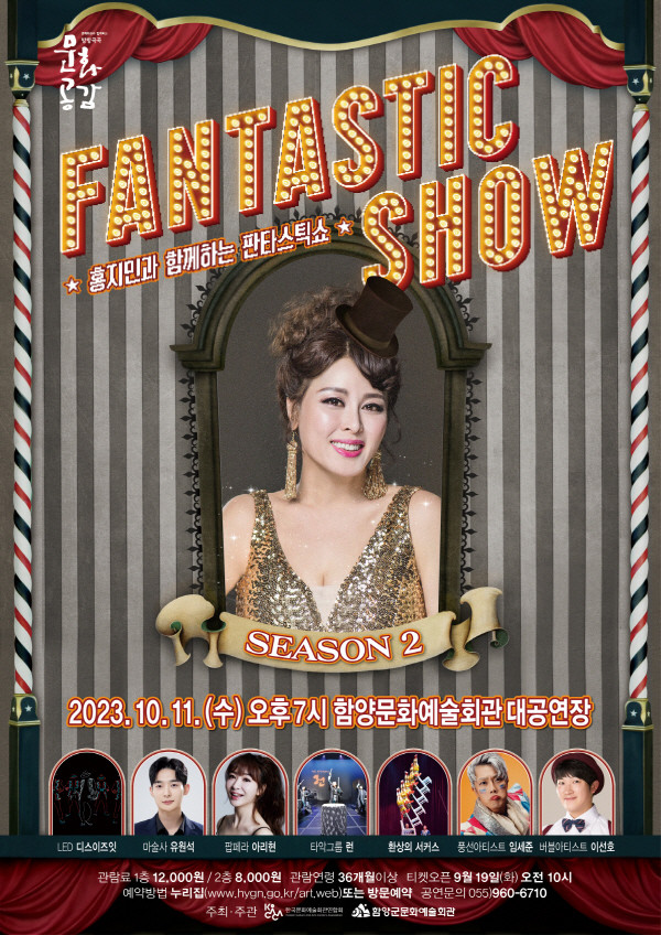 ‘홍지민과 함께하는 판타스틱쇼-시즌2’는 뮤지컬배우 홍지민, LED공연팀 디스이즈잇, 마술사 유원석, 팝페라 아리현, 퓨전 타악그룹 런, 환상의 서커스팀, 풍선 아티스트 임세준, 버블 아티스트 이선호 등이 출연하여 풍성하고 판타스틱한 공연을 펼칠 계획이다.