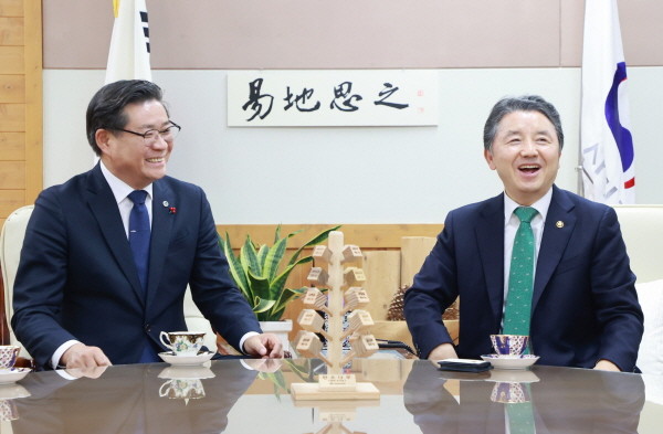 군에 따르면 이날 진 군수는 남성현 산림청장을 만나 국립대봉산 숲 체원 조성사업 200억 원, 남부목재자원화센터 건립 200억 원, 다목적 사방댐 건설 30억 원 등 총사업비 430억 원의 재정지원을 건의했다.