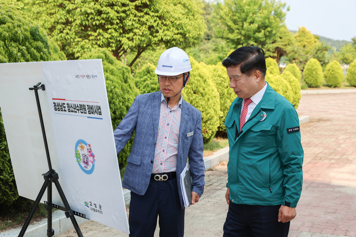 ▲고성군(군수 이상근)은 5월 28일 하이면 자란만로 646 일대에 위치한 경상남도청소년수련원 리모델링 공사 현장을 점검하고, 사업 진행 상황을 점검했다고 밝혔다. (사진=고성군) |