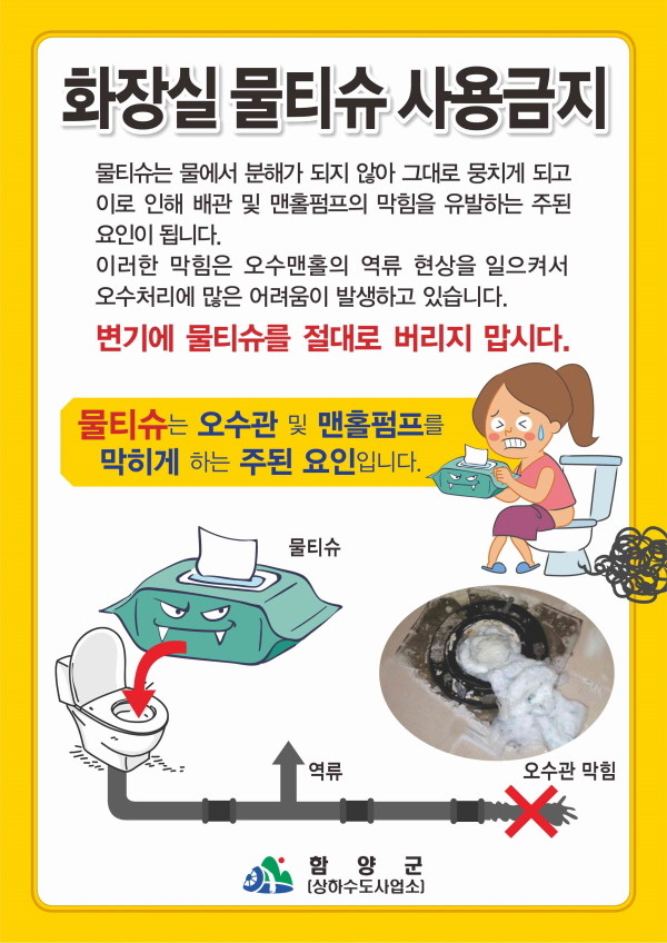 ▲ 물티슈사용금지(전단지)(사진=함양군) |