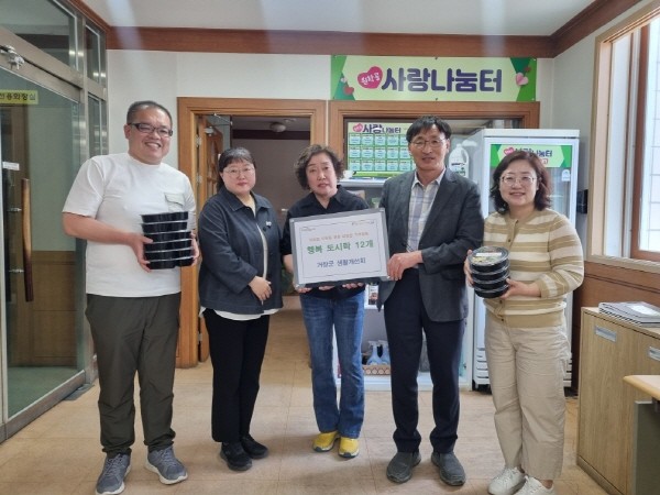 ▲ 거창군 생활개선회 위천면 공유냉장고에 도시락 기탁(사진=거창군) |