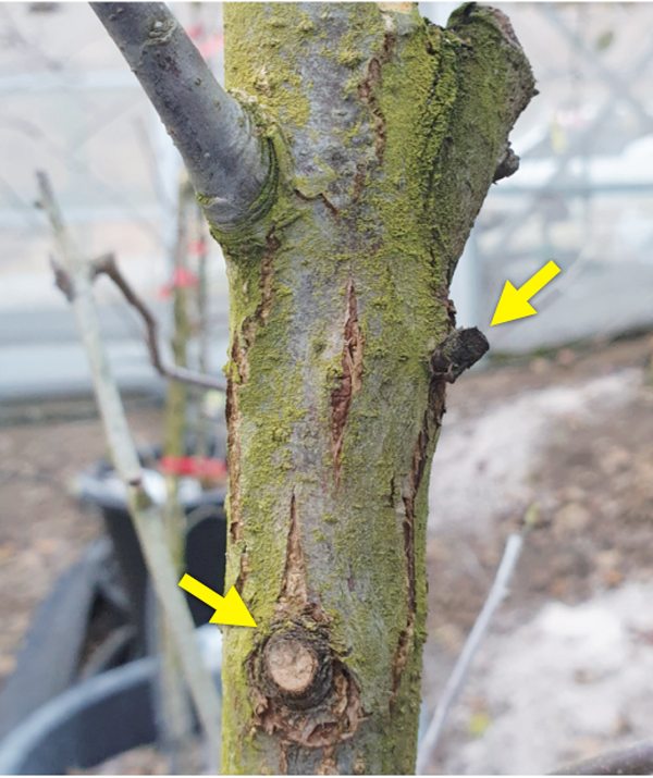 특히 겨울철에는 병원균이 과수나무에서 궤양 형태로 활동하여 가지치기 시 제거해야 하며 전지가위, 톱 같은 도구에 의한 전염 위험성이 매우 높아 철저한 소독과 관심이 필요하다.