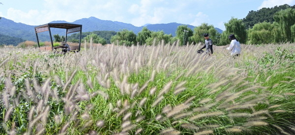 ▲거창군 남상면 거창창포원에 ‘가을의 전령’으로 불리는 수크령(길갱이)이 피어 있다.(사진=거창군) |