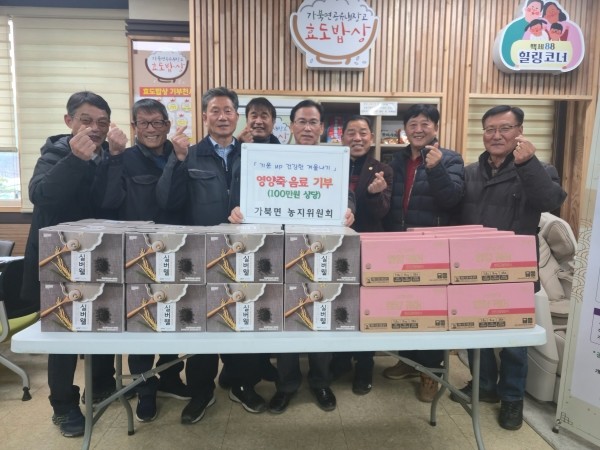 이번 나눔은 가북면 농지위원회 위원 9명이 연말연시를 맞아 어려운 이웃을 돕고자 뜻을 모아 마련한 것으로, 식사가 어려운 취약계층의 영양불균형 해소와 겨울철 기력 증진을 돕기 위해 추진됐다.