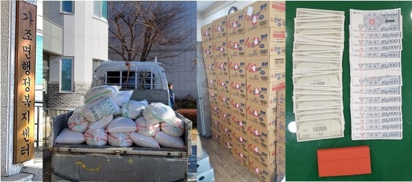 이날 기부한 7명은 가조면에 거주하고 있는 청장년으로 20여 년 전부터 다 같이 매년 연말마다 꾸준히 쌀, 라면 등을 기부하며 선행을 이어오고 있다.