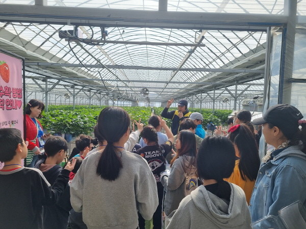 이번 방문에 참여한 27명의 어린이대표단은 수성구 관내 14개 초등학교에서 선발됐으며, 오전에는 될농 농장에서 딸기 수확 체험을 진행하고, 사과테마파크에서 피자 만들기와 철판 아이스크림 만들기 체험에 참여했다.