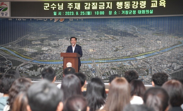 이번 교육에서는 구인모 군수가 직접 강사로 나서 갑질 근절을 위한 공무원 행동강령과 주요 갑질 판단 기준을 소개하며, 간부공무원들이 갑질에 대한 인식을 높이고 청렴한 공직사회를 조성하는 데 솔선수범해 줄 것을 강조했다.