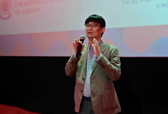 [프레스뉴스] 채정병 특파원=4일(현지시간) 주요르단 대한민국대사관과 요르단 왕립영화위원회가 개최하는 제19회 한국영화제가 6일까지 3일간 우리영화 '공조2', '괜찮아 괜찮아 괜찮아', '1승'이 매일 저녁 암만 타지시네마에서 상영되는 가운데 첫날 상영작 '공조2'의 이석훈 감독이 관객들 앞에서 영화에 대한 Q&A를 하고 있다.