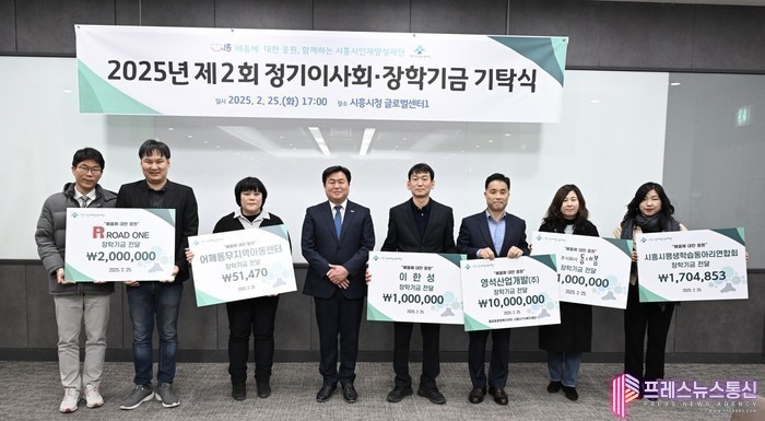 [프레스뉴스] 장현준 기자= (재)시흥시인재양성재단(이사장 임병택)은 지난 2월 25일 시청 글로벌센터에서 ‘2025년 정기이사회와 장학기금 기탁식’을 개최했다.