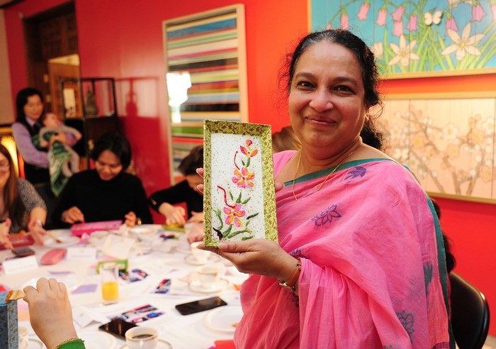 [프레스뉴스] 채정병 특파원=22일(현지시간) 주 요르단 한국대사관에서 열린 한지공예 체험행사에서 스리랑카 대사가 자신이 만든 작품을 들어 보이고 있다.