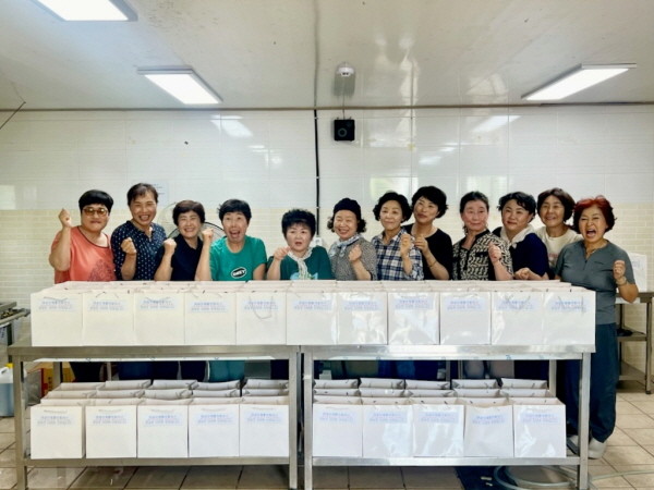 이날 한국여성농업인 함양군연합회 회원들은 정성을 가득 담은 얼갈이 물김치, 검정 콩자반, 어묵 파프리카 볶음 등 반찬 3종을 만들어 어려운 가정 80가구에 전달했다.