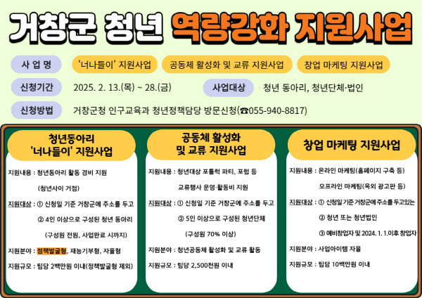 | ▲거창군 청년 역량강화 지원사업 포스터(사진=거창군) |